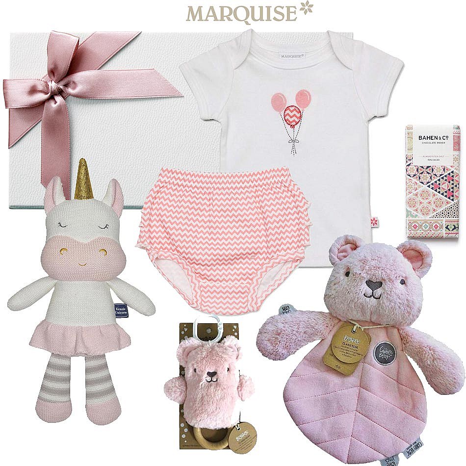 Made from 100% Cotton knit and featuring a jingling rattle and gold unicorn, Kenzie the Unicorn is sure to become baby's favourite cuddly friend. Order together with a baby gift bundle or select individually for a sibling.