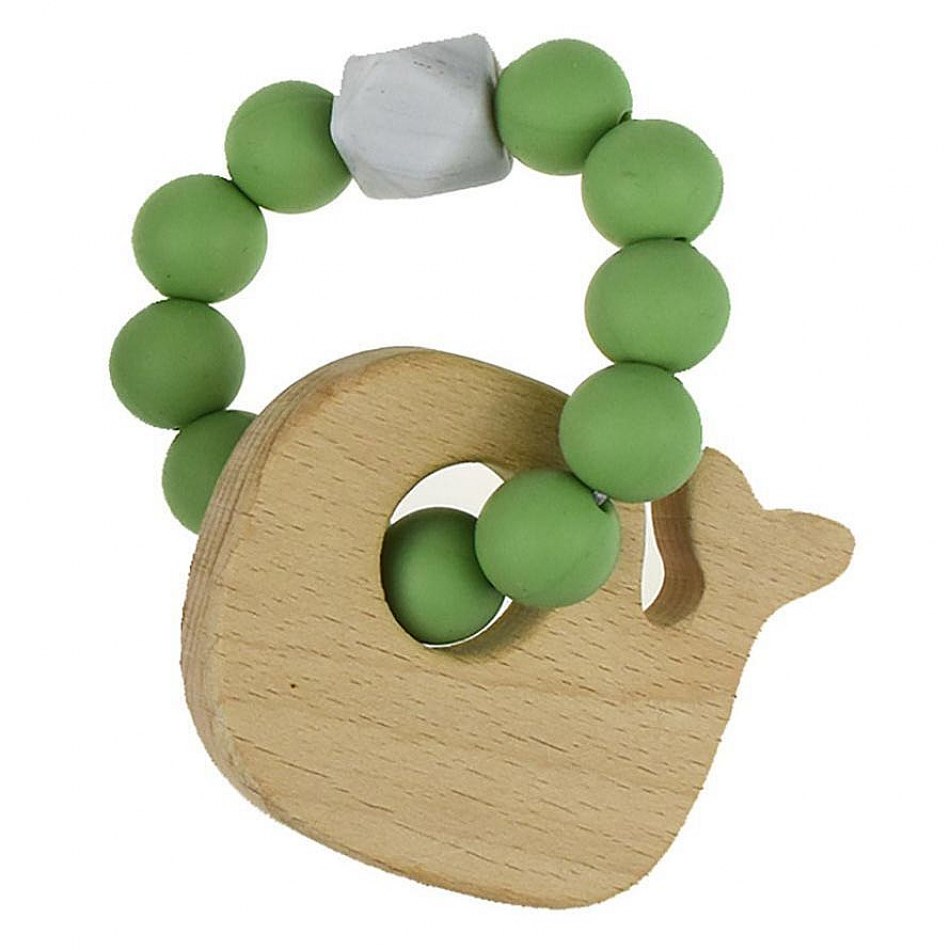 Wooden Silicone Whale Teether in Green